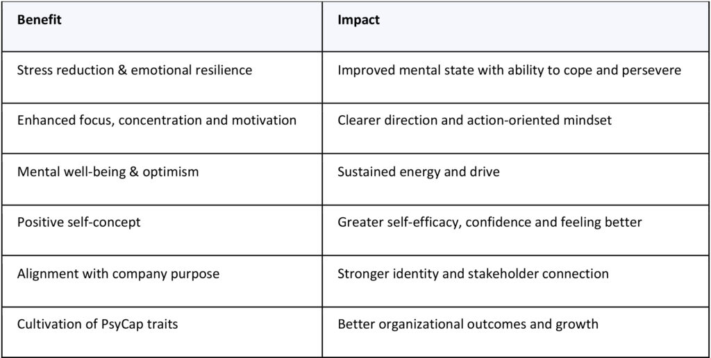 Focusing on the positive, re-enforcing and repeating positive statements, or affirmations can have a powerful effect. Studies indicate that affirmative self-talk can re-wire critical neurotransmitters that fuse connections together in the brain. Writing down these affirmations further engages the reward and self-processing areas of the mind, enhancing concentration, improving performance under stress. Positive affirmations don’t just feel good—there’s research to back up their many benefits. Whether it’s improving mental well-being, shaping attention toward success-oriented actions, or aligning with a deeper purpose, the benefits are real and the impact is measurable.