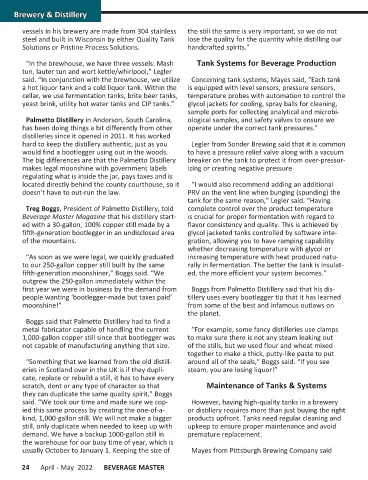 to our 250-gallon copper still built by the same rally in fermentation. The better the tank is insulat-