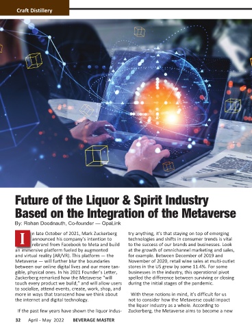 If the past few years have shown the liquor indus- Zuckerberg, the Metaverse aims to become a new