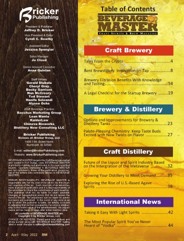 E-mail: editor@BrickerPublishing.com Craft Distillery