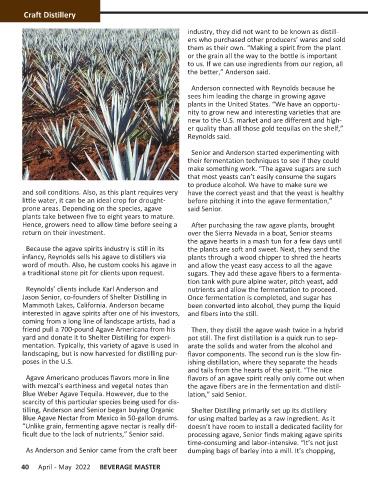 ficult due to the lack of nutrients,” Senior said. processing agave, Senior finds making agave spirits