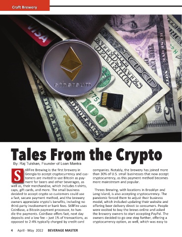 ment for beers and other beverages, as cryptocurrency, as this payment method becomes