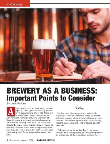 plan for when running a brewery, and many of points to consider when hiring employees for your