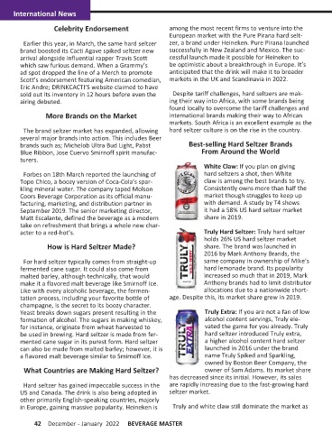 be used in brewing. Hard seltzer is made from fer- hard seltzer introduced Truly extra,