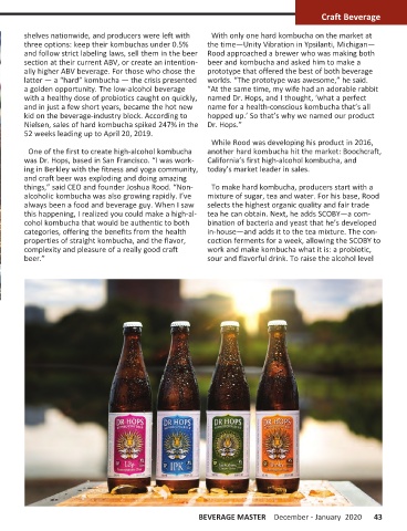 was Dr. Hops, based in San Francisco. “I was work- California’s first high-alcohol kombucha, and