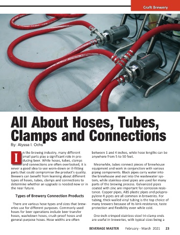 I n the brewing industry, many different between 1 and 4 inches, while hose lengths can be