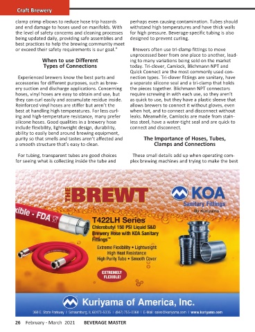 or exceed their safety requirements is our goal.” Brewers often use tri-clamp fittings to move