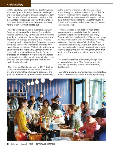 producing spirits using the best Oregonian products to Kuehler, “Molly’s Master’s in distilling from