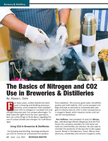 use of carbon dioxide and nitrogen for craft bever- Ken Hoffman, vice president of sales for Allcryo,