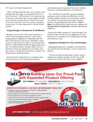 ing. For small breweries, nitrogen often comes in Specialized equipment is needed to facilitate the