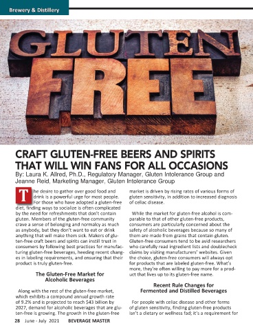 2027, demand for alcoholic beverages that are glu- of gluten sensitivity, finding gluten-free products